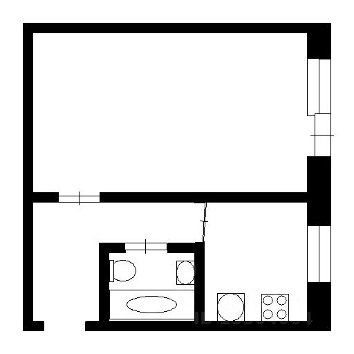 Комната 19 кв м, кухня 12 кв м., есть просторный тамбур на две квартиры.