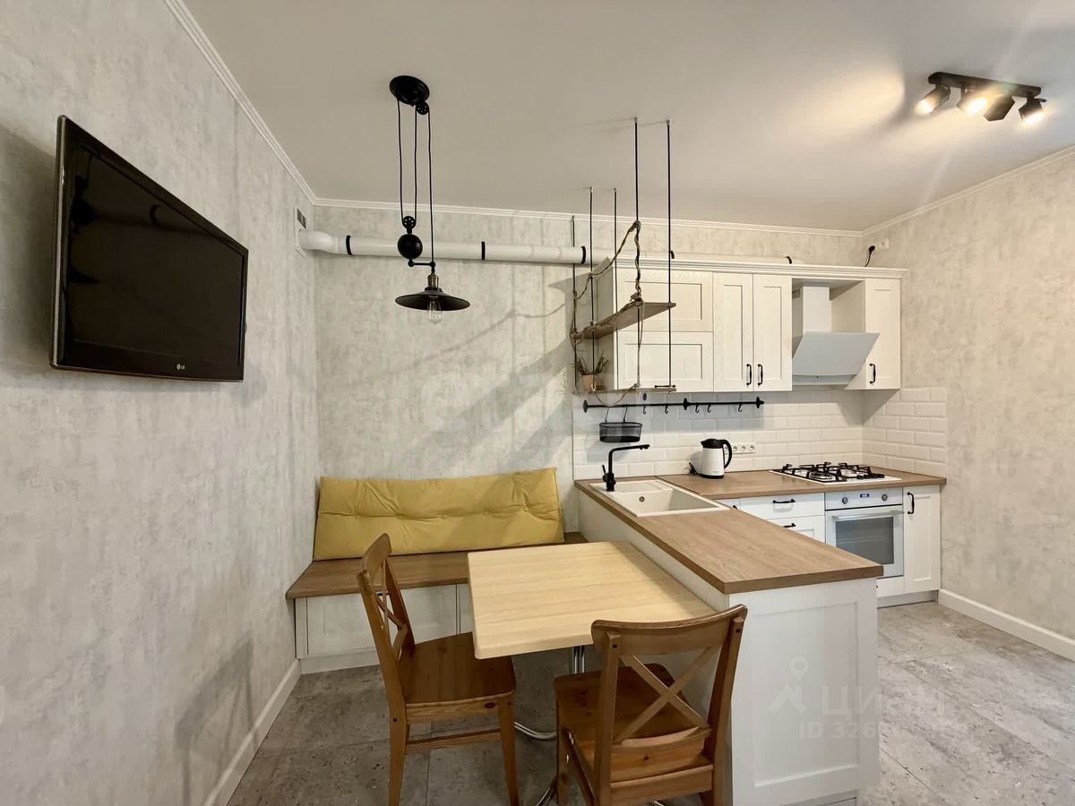 Кухня 12.4 м2 поделена на рабочую зону и зону отдыха. Оснащена мебелью и техникой.