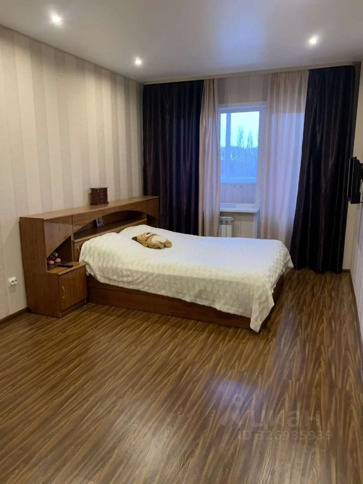 Внутри сделан косметический ремонт, состояние аккуратное. Комната просторная, есть выход на застекленный балкон — окна выходят на улицу. На кухне встроенная мебель, газовая плита. Санузел совмещенный, сантехника современная, стиральная машина в наличии.