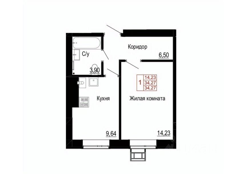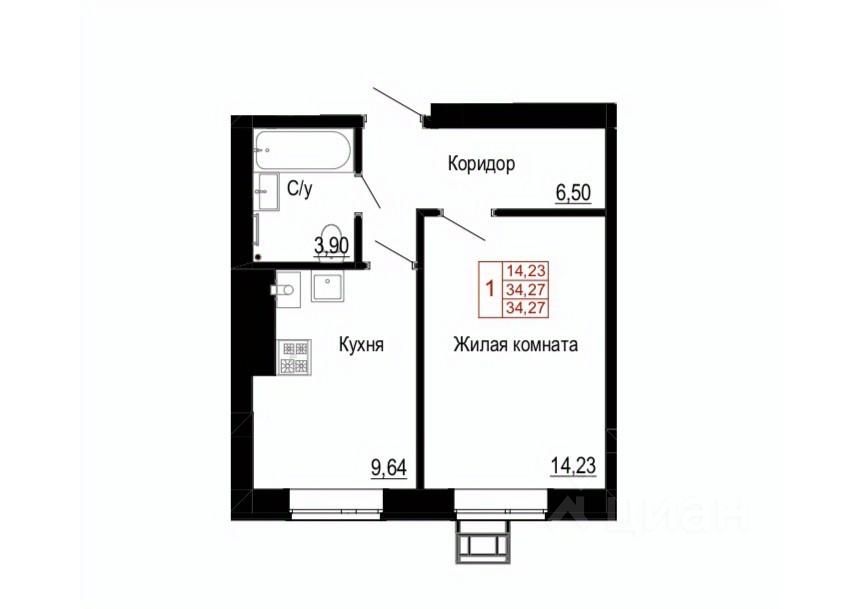 Общая площадь34,27 м2