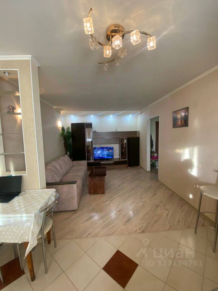 Квартира в отличном состоянии, с современным ремонтом, можно зайти и жить, чистая, уютная, с/у совмещенный - в кафеле, лоджия - остеклена, окна ПВХ, кондиционер, алюминиевые радиаторы, современные межкомнатные двери, стены оклеены обоями постельных тонов, в качестве напольного покрытия выбран кафель и ламинат. Квартира с мебелью и техникой.