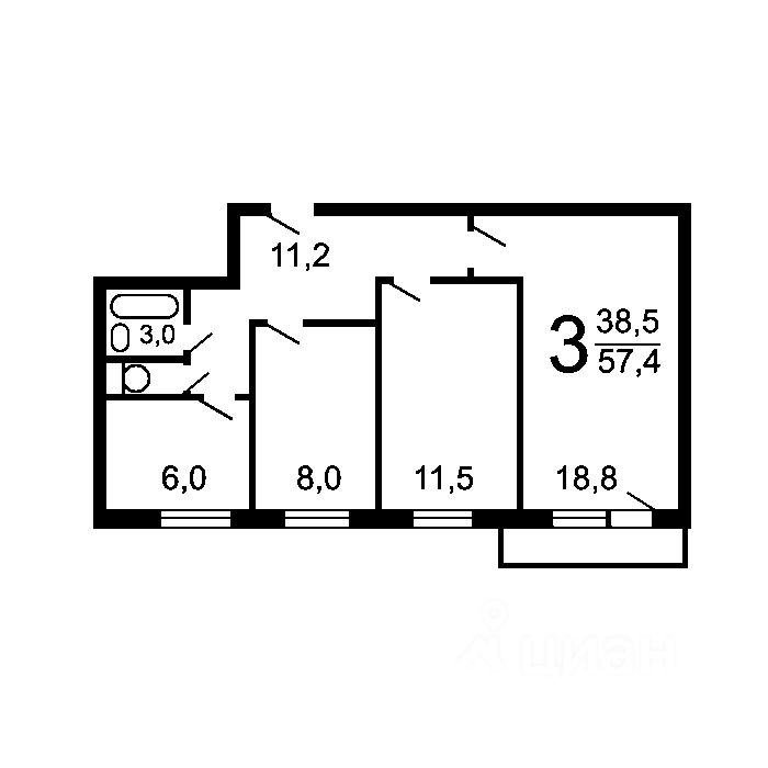 Код объекта: 2063911. В ПРОДАЖЕ просторная 3-комнатная квартира!